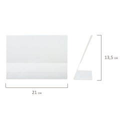 Тип товара: подставка, Формат листовки: А5, Расположение: горизонтальное, Функциональность: односторонний, Количество отделений: 1, Размещение: настольное, Серия: Standard, Прозрачная: да, Материал: оргстекло, Высота вставляемого листа: 150 мм, Ширина вставляемого листа: 210 мм, Высота: 152 мм, Ширина: 212 мм, Глубина: 60 мм, Упаковка: гофрокороб.