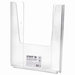 Вертикальная настенная подставка STAFF подходит для размещения рекламной или другой печатной продукции формата А4 и меньше.Изготовлена из прозрачного акрилового стекла. Предназначена для настенного размещения. В защитной плёнке. Крепления в комплект не входят.