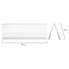 Тип товара: табличка, Формат листовки: А4, Расположение: горизонтальное, Функциональность: двусторонний, Количество отделений: 2, Размещение: настольное, Прозрачная: да, Материал: высокоударопрочный листовой пластик, Высота вставляемого листа: 100 мм, Ширина вставляемого листа: 300 мм, Высота: 100 мм, Ширина: 300 мм, Глубина: 75 мм, Упаковка: гофрокороб.