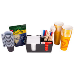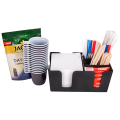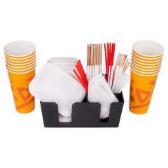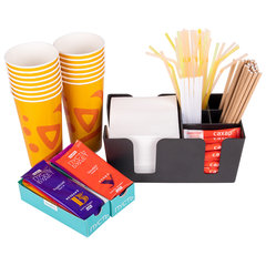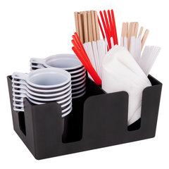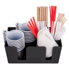 Можно разместить все самое необходимое.Универсальная подставка органайзер LAIMA для салфеток, сахара, размешивателей, зубочисток, трубочек и других дополнительных и вспомогательных аксессуаров. Идеально для баров, ресторанов, кофеен. Можно разместить все самое необходимое не только для бармена или бариста, но и для клиентов в плане самообслуживания в офисах у кофе машин. Компоновка наполнителей данной подставки органайзера может быть абсолютно любой на Ваше усмотрение исходя из потребностей.