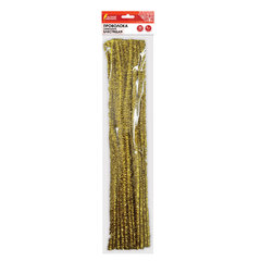 Тип проволоки: блестящая, Длина: 30 см, Диаметр: 6 мм, Цвет проволки: однотонный, Количество в упаковке: 30 шт., Количество цветов в наборе: 1 шт., Цвет: золотой, Материал: проволока, полиэстер, Упаковка: пакет с европодвесом, Тип товара: проволока.