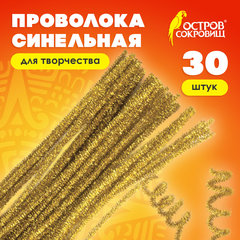 Проволока синельная для творчества "Блестящая", золотая, 30 шт., 0,6х30 см, ОСТРОВ СОКРОВИЩ, 661541