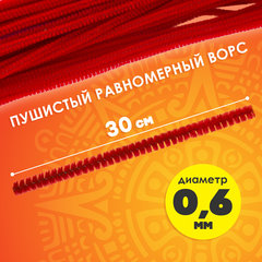 Тип проволоки: пушистая, Длина: 30 см, Диаметр: 6 мм, Цвет проволки: однотонный, Количество в упаковке: 30 шт., Количество цветов в наборе: 1 шт., Цвет: красный, Материал: проволока, полиэстер, Упаковка: пакет с европодвесом, Тип товара: проволока.