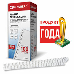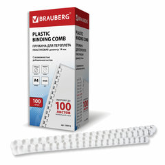 Пружины пластиковые для переплета, КОМПЛЕКТ 100 шт., 14 мм (для сшивания 81-100 л.), белые, BRAUBERG, 530918