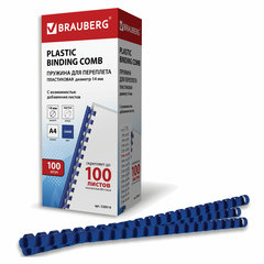 Пружины пластиковые для переплета, КОМПЛЕКТ 100 шт., 14 мм (для сшивания 81-100 л.), синие, BRAUBERG, 530919