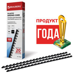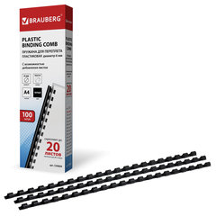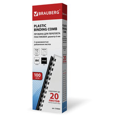 Пружины пластиковые для переплета, КОМПЛЕКТ 100 шт., 6 мм (для сшивания 10-20 л.), черные, BRAUBERG, 530809