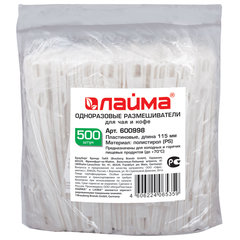 Размешиватель одноразовый пластиковый 115 мм, КОМПЛЕКТ 500 шт., БЮДЖЕТ для чая и кофе ПС, LAIMA, 600998