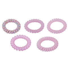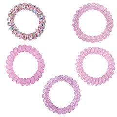 Резинки обеспечивают надежную фиксацию, удобно снимаются, не цепляют и не рвут волосы. Тип товара: резинка для волос, Тип резинки: пружинка, Цвет: розовый, Декор: рисунок, Набор: да, Количество в наборе: 5 шт., Размер: 5 см, Материал: полиуретан, Серия: -, Упаковка: картонная карточка с европодвесом. Код: 457062