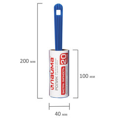 Тип товара: ролик, Вид: липкий ролик, Количество сменных блоков: 1 шт., Количество листов: 20 шт., Высота с ручкой: 200 мм, Высота ролика: 100 мм, Диаметр ролика: 40 мм, Упаковка: европодвес.
