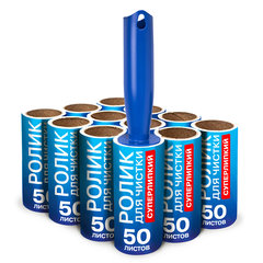 Ролик для чистки одежды / мебели от шерсти, ворсинок, пыли, волос + 12 сменных блоков по 50 листов, суперлипкий, LAIMA, 608385