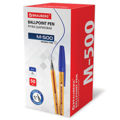 Ручка шариковая BRAUBERG "M-500 ORANGE TONE", СИНЯЯ, корпус тонированный оранжевый, узел 0,7 мм, линия письма 0,35 мм, 143451