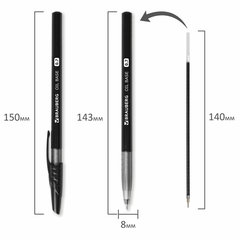 Шариковая ручка BRAUBERG "Oil Base" - надежная и долговечная ручка.Модель изготовлена из высококачественных материалов, сменный стержень длиной 140 мм заправлен немецкими чернилами на масляной основе DOKUMENTAL черного цвета. Удобная рифленная зона захвата. Диаметр пишущего узла 0,7 мм создает тонкую линию письма, равную 0,35 мм. Цвет чернил - черный. Стильный корпус с печатью.