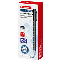 Ручка шариковая масляная BRAUBERG "Orient", ЧЕРНАЯ, корпус черный, игольчатый узел 0,7 мм, линия письма 0,35 мм, 143000