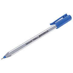 Ручки PENSAN "Triball" поставляется в стильном удобном трехгранном пластиковом корпусе серебристого цвета с деталями в цвет чернил.Швейцарский никелево-серебряный игольчатый наконечник PREMEC (Швейцария) толщиной 1 мм обеспечит более качественное и долговечное письмо, а в совокупности с масляными чернилами пониженной вязкости гарантирует письмо без пропусков. Ширина линии письма - 0,5 мм.