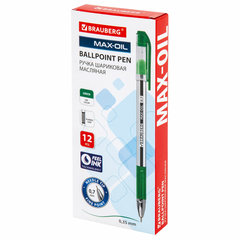 Ручка шариковая масляная с грипом BRAUBERG "Max-Oil", ЗЕЛЕНАЯ, игольчатый узел 0,7 мм, линия письма 0,35 мм, 142144
