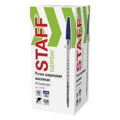 Шариковая ручка STAFF "EVERYDAY" - это самая необходимая ручка для ежедневного письма.Шариковая ручка с прозрачным корпусом и рифлением в зоне захвата, препятствующим скольжению пальцев при письме. Ручка снабжена чернилами синего цвета на масляной основе, обеспечивающими непревзойденно легкое и мягкое письмо. Диаметр пишущего узла 0,7 мм создает тонкую линию письма равную 0,35 мм.