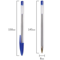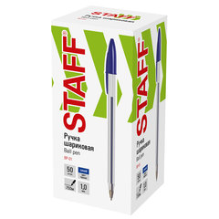 Ручка шариковая STAFF "Basic BP-01", письмо 750 метров, СИНЯЯ, длина корпуса 14 см, линия письма 0,5 мм, 141672