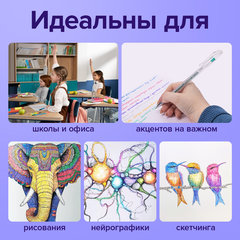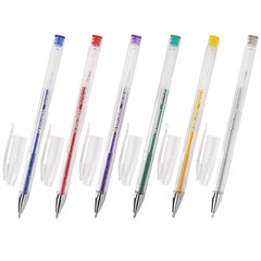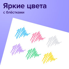 Ручки гелевые BRAUBERG "Jet", НАБОР 6 ЦВЕТОВ, БЛЕСТКИ, узел 1 мм, линия письма 0,8 мм, 141030