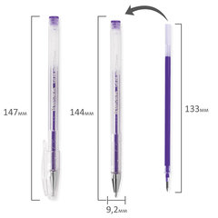 Гелевые ручки BRAUBERG "Jet" - набор ярких, запоминающихся и необычных цветов с блестками на каждый день для работы в офисе и учебы.Ручка имеет круглый прозрачный корпус и рифление в зоне захвата для удобства письма. Сменный стержень длиной 135 мм со стандартным наконечником позволит использовать ручку максимально долго. Диаметр пишущего узла, равный 1,0 мм, создает линию письма, равную 0,8 мм. Набор включает гелевые ручки из 6 различных цветов чернил с блёстками: синий, красный, фиолетовый, зеленый, желтый, серебристый. Рекомендован для детского творчества. Количество в упаковке: 6 шт., Цвет чернил: ассорти, Эффект чернил: блестки, Толщина линии письма: 0.8 мм, Диаметр пишущего узла: 1 мм, Серия: Jet, Длина сменного стержня: 135 мм, Форма наконечника: стандартный, Форма корпуса: круглая, Упаковка: пластиковый футляр с подвесом. Код: 141030