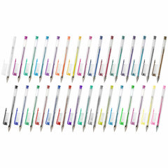 Набор включает 30 гелевых ручек: 4 ручки с классическими чернилами, 6 с блестками, 7 с эффектом металлик, 6 пастельных и 7 неоновых. Цвета классических чернил: синий, черный, красный, зеленый. Цвета чернил с блестками: синий, красный, фиолетовый, зеленый, желтый, серебристый. Цвета пастельных чернил: голубой, зеленый, фиолетовый, желтый, розовый, белый. Цвета неоновых чернил: красный, зелёный, голубой, фиолетовый, оранжевый, жёлтый, розовый. Цвета чернил с эффектом металлик: синий, красный, зеленый, фиолетовый, голубой, золотой, серебряный. Количество в упаковке: 30 шт., Цвет чернил: ассорти, Эффект чернил: чернила с различными эффектами, Одноразовая: да, Толщина линии письма: 0.5 мм, Диаметр пишущего узла: 1 мм, Серия: KIDS gel pens, Длина сменного стержня: 129 мм, Форма наконечника: стандартный, Форма корпуса: шестигранная, Упаковка: ПВХ-чехол с подвесом. Код: 143819