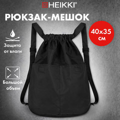 Рюкзак спортивный мешок HEIKKI PACK (ХЕЙКИ), 2 отделения, увеличенный объем, 40х35 см, черный, 272419