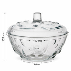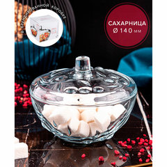 Тип товара: сахарница, Объем: 450 мл, Материал: стекло, Особенности: с крышкой, Высота: 60 мм, Диаметр: 140 мм, Серия: ПЕРЛА, Упаковка : индивидуальная подарочная упаковка.