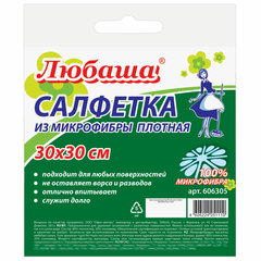 Салфетка из микрофибры ЛЮБАША "ПЛЮС" идеально удаляет загрязнения, вытирает пыль, полирует любые виды поверхностей. Обладает повышенной впитываемостью и антибактериальным эффектом, имеет длительный срок службы. Универсальна в применении.Изготовлена из микрофибры плотностью 220 г/м2. Размер - 30х30 см. Поставляется в пакете с европодвесом.