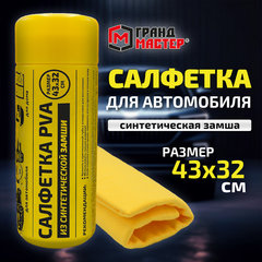 Салфетка синтетическая PVA-замша 43x32 см, в тубе, желтая, для авто, дома и офиса, ГРАНДМАСТЕР, 609975