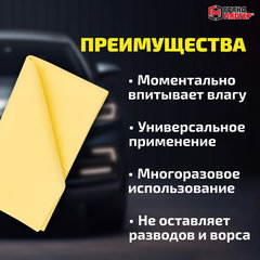 Инновационная салфетка из искусственной замши ГРАНДМАСТЕР – универсальное средство для ухода за автомобилем! Обладает сверхсильной впитываемостью, легко удаляет загрязнения без моющих средств и разводов, идеально подходит для сушки.Салфетка изготовлена из современных материалов – поливинилацетата (PVA) и полиэстера, которые обеспечивают её эффективность. Она отлично справляется с очисткой окон, зеркал, капота, панели и других поверхностей автомобиля, не оставляя ворсинок и пятен. При этом её универсальные свойства позволяют использовать её не только для ухода за автомобилем, но и для дома, дачи, а также офиса: она идеально моет окна, собирает шерсть и ворс на мебели. Многоразовое использование и долгий срок службы делают её надёжным помощником везде, где требуется качественная уборка.
