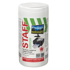 Салфетки для экранов всех типов и пластика универсальные STAFF "EVERYDAY", 13х15 см, туба 100 шт., влажные, 511518