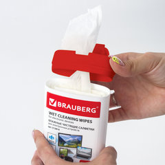 Салфетки для электронных устройств универсальные BRAUBERG, компактная туба 100 шт., влажные, 512810