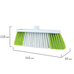 Тип товара: щетка, Назначение: для уборки, Материал основы щетки: пластик, Материал щетины: полипропилен, Тип щетины: мягкая, Длина щетины: 8 см, Ширина щетки: 31 см, Глубина щетки: 5 см, Тип крепления черенка: еврорезьба, Цвет: бело-зеленый.