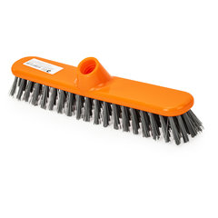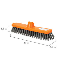 Щетка с жестким ворсом идеально подходит для внутренней и наружной сухой уборки предприятий, офисов – везде, где требуется собрать мелкий мусор, не портя при этом поверхность самого пола.Для стойких загрязнений. Использовать с усиленным еврочеренком. Тип товара: щетка, Назначение: для пола, Материал основы щетки: пластик, Материал щетины: пластик, Тип щетины: жесткая, Длина щетины: 3.5 см, Ширина щетки: 27 см, Глубина щетки: 4.5 см, Тип крепления черенка: еврорезьба, Цвет: оранжевый. Код: 601321