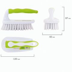 Тип товара: щетка, Назначение: для уборки, Материал основы щетки: пластик, Материал щетины: полипропилен, Тип щетины: жесткая, Длина щетины: 3 см, Ширина щетки: 6.5 см, Глубина щетки: 15.5 см, С рукояткой: да, Длина рукоятки: 13 см, Тип крепления черенка: нет, Цвет: бело-зеленый.