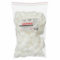 Ватные нестерильные шарики изготавливаются из высококачественного 100% хлопка, гигроскопичны, не теряют формы при механическом воздействии. Ватные шарики упакованы по 100 штук в полимерный пакет-зиплок.Шарики используются в основном при гигиенических процедурах и в косметологии.