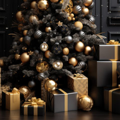 Шары ёлочные 4 шт., 8 см, "Aristo", пластик, цвет: черный/золотистый, ЗОЛОТАЯ СКАЗКА, 591994