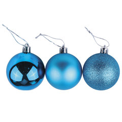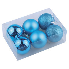 Все шары в наборе одного цвета. Количество в наборе: 6 шт., Диаметр: 6 см, Материал: пластик, Цвет: бирюзовый, Отделка: ассорти, Серия: Trio. Код: 590871