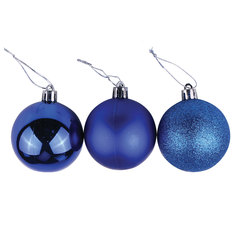 Все шары в наборе одного цвета. Количество в наборе: 6 шт., Диаметр: 8 см, Материал: пластик, Цвет: синий, Отделка: ассорти, Серия: Trio. Код: 590872