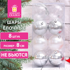Шары ёлочные 8 шт., 8 см, "Eden Colors", пластик, цвет: серебристый/жемчужный, ЗОЛОТАЯ СКАЗКА, 591981