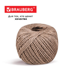 Джутовый шпагат BRAUBERG отлично подходит для декорирования, плетения, обвязки, упаковки товаров, инкассации, опечатывания и прошивки документов. Активно применяется для хозяйственных и бытовых нужд в домашнем и дачном хозяйстве.Изготовлен из натурального сырья растительного происхождения. Представляет собой нить диаметром 1,5 мм намотанную в клубок. Обладает линейной плотностью 1200 текс. Отличается мягкостью, высокой прочностью и эластичностью, не накапливает статическое электричество, устойчив к негативному воздействию ультрафиолета, не боится высоких температур и холода. Имеет равномерную витую структуру без посторонних включений, не ворсится и не колется. Джутовый шпагат отлично подходит для декорирования корзинок, вазочек, шкатулок, плетения сумок, ковриков, украшений. Так же джутовый шпагат используют для изготовления предметов интерьера, изделий в технике макраме. Активно применяется для хозяйственных нужд, подвязки растений и деревьев, упаковки товаров, для строительных и ремонтных работ. Подходит для опечатывания, инкассации, прошивки документов в делопроизводстве.