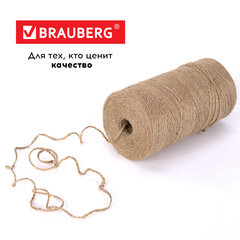 Шпагат джутовый упаковочный полированный, длина 500 м, диаметр 1,5 мм, 1200 текс, BRAUBERG, 605008