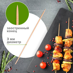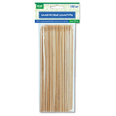 Тип товара: шампуры для шашлыка, Длина: 300 мм, Диаметр: 3 мм, Материал: бамбук, Количество в упаковке: 100 шт..