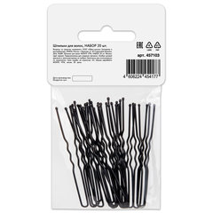Тип товара: шпильки для волос, Цвет: черный, Тип покрытия: глянцевый, Тип заколки: шпилька, Декор: нет, Набор: да, Количество в наборе: 20 шт., Размер: 6 см, Материал: металл, Серия: -, Упаковка: пакет с картонным европодвесом.