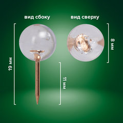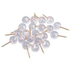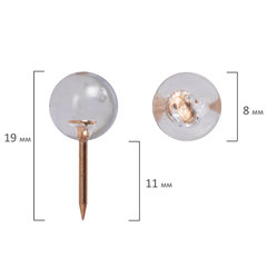 Тип кнопки: гвоздик, Количество в упаковке: 100 шт., Тип острия: игольчатое, Длина острия: 11 мм, Форма шляпки: шарик, Диаметр шляпки: 8 мм, Серия: CLEAR & GOLD, Материал изготовления шляпки: пластик, Цвет шляпки: прозрачный, Упаковка: пластиковая коробка с европодвесом.