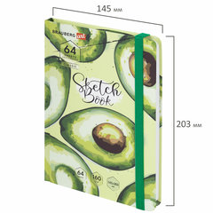 Скетчбук, белая бумага 160 г/м2, 145х203 мм, 64 л., резинка, твердый, BRAUBERG ART CLASSIC "Авокадо", 114588