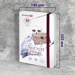 Скетчбук, белая бумага 80 г/м2, 145х203 мм, 80 л., резинка, твердый, BRAUBERG ART DEBUT "Хогвартс", 114581