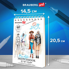 Скетчбуки BRAUBERG ART идеальны для графики и эскизов. Бумага прекрасно подойдет для рисования карандашами и другими сухими материалами. Также могут быть использованы для рисования линерами.Изделие имеет размер 145х205 мм и содержит 60 листов с разнообразными шаблонами фигур для моделирования образа. Плотность внутреннего блока - 160 г/м2 с гладкой текстурой. Листы удобно скреплены спиралью, что позволяет переворачивать их на 180 градусов. Стильный дизайн на обложке из импортного мелованного картона не оставит равнодушной ни одну модницу.