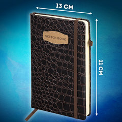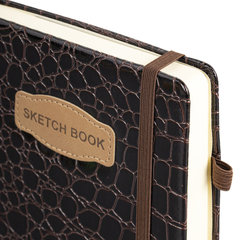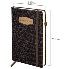 Скетчбук, слоновая кость 140 г/м2, 130х210 мм, 80 л., КОЖЗАМ, резинка, BRAUBERG ART CLASSIC, CROCO, коричневый, 116471