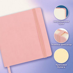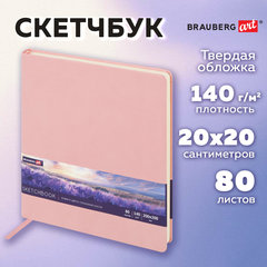 Скетчбук, слоновая кость 140 г/м2 200х200 мм, 80 л., КОЖЗАМ, резинка, BRAUBERG ART CLASSIC, пастель розовый, 116880