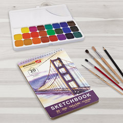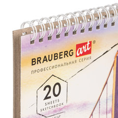 Скетчбук BRAUBERG ART "CLASSIC" для эскизов и графики. Внутренний блок - бумага белого цвета с гладкой фактурой. Подходит для работы с широким спектром графических материалов (уголь, соусы, карандаши и прочие).Привлекательная обложка выполнена из твердого переплетного картона. В скетчбуке 20 листов бумаги производства ГОЗНАК плотностью 200 г/м2. Листы удобно скреплены спиралью - это позволяет переворачивать их на 180 градусов. Задняя подложка жесткая, что позволит делать зарисовки и наброски "на весу". Удобный формат размером 165х240 мм.